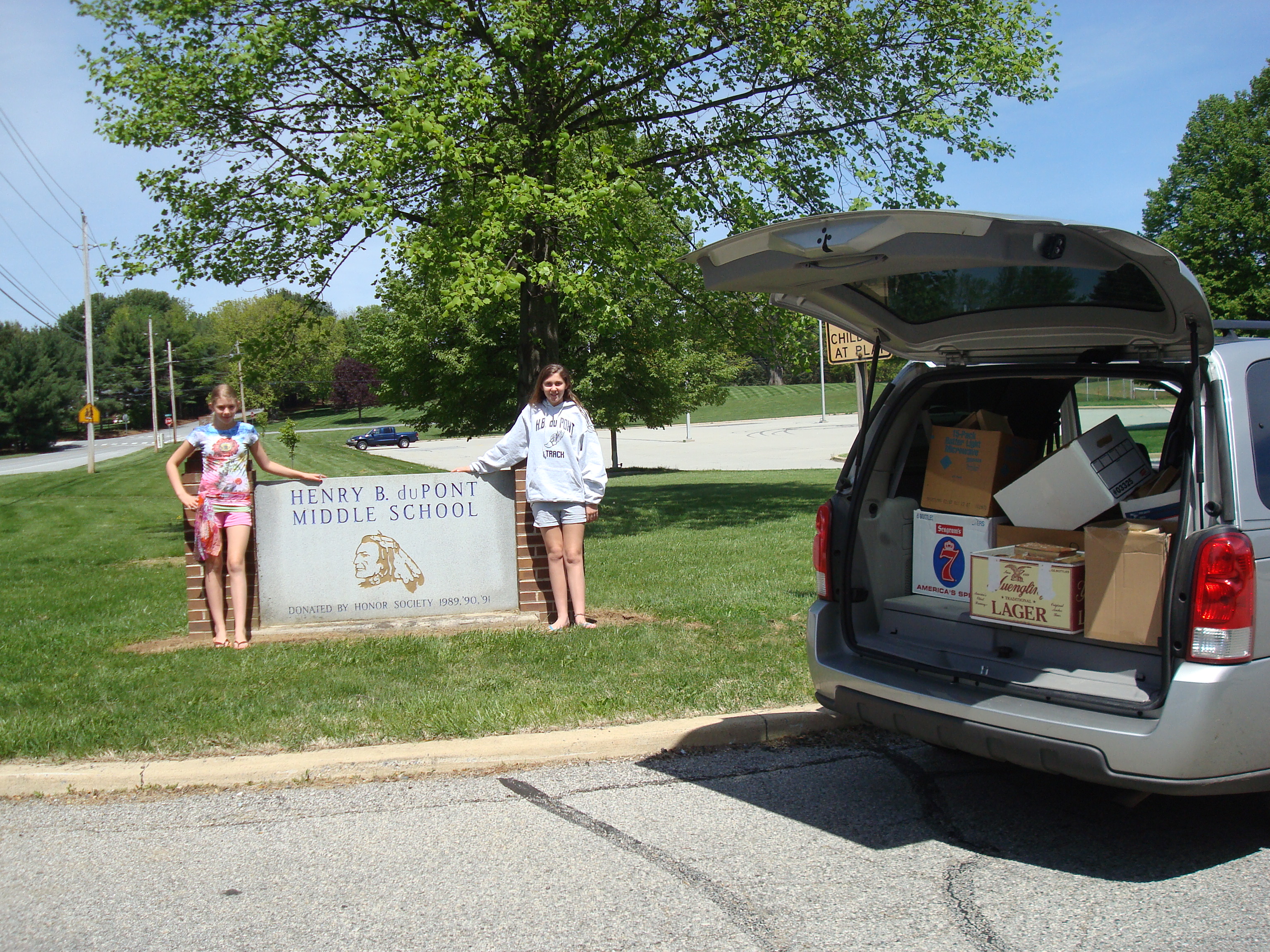 Pictured here are Claire Gonye and Christine McNeill, both H.B. duPont Middle School students. H.B. duPont Middle School and their Abitibi Paper Retriever fundraising effort are the beneficiaries of the recycled paper.