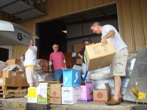 Pictured: Don McNeill (foreground) and members of the staff at Cann Printing in Wilmington unload dozens of pallets of books into easily transportable boxes. Cann Printing kindly offered use of their loading dock, manpower and warehouse space. Boxes were provided by Dunkirk Liquors. Thanks to both firms — we can’t do it without you!