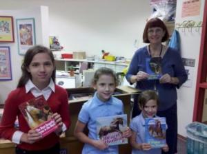 Pictured are Jazmine, Charmaine and Kayleigh Wood with Carrcroft Elementary’s librarian, Paula Daubert.