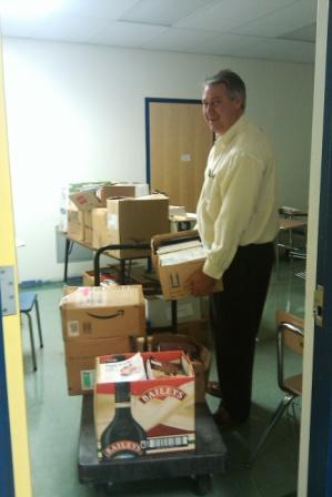 Photo: Donald McNeill delivers the first shipment of books to the Student Council office.