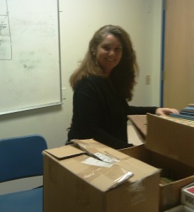 Each delivery includes several hundred pounds of books that must be divested of their covers (rendering them “naked”). Then the students can recycle them through Abitibi Retriever, with the proceeds going to fund school programs.