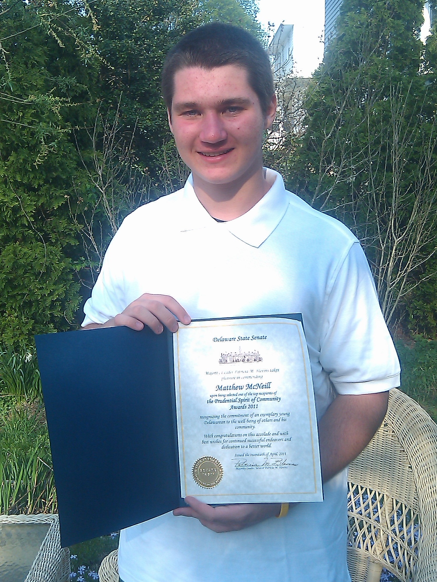 Success Won’t Wait literacy volunteer Matt McNeill recently received a commendation from Majority Leader Patricia M. Blevins of the Delaware State Senate, 7th District, recognizing “the commitment of an exemplary young Delawarean to the well-being of others and his community.”