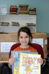 Pictured here is Rebecca, a student at the school with a sampling of the new books!