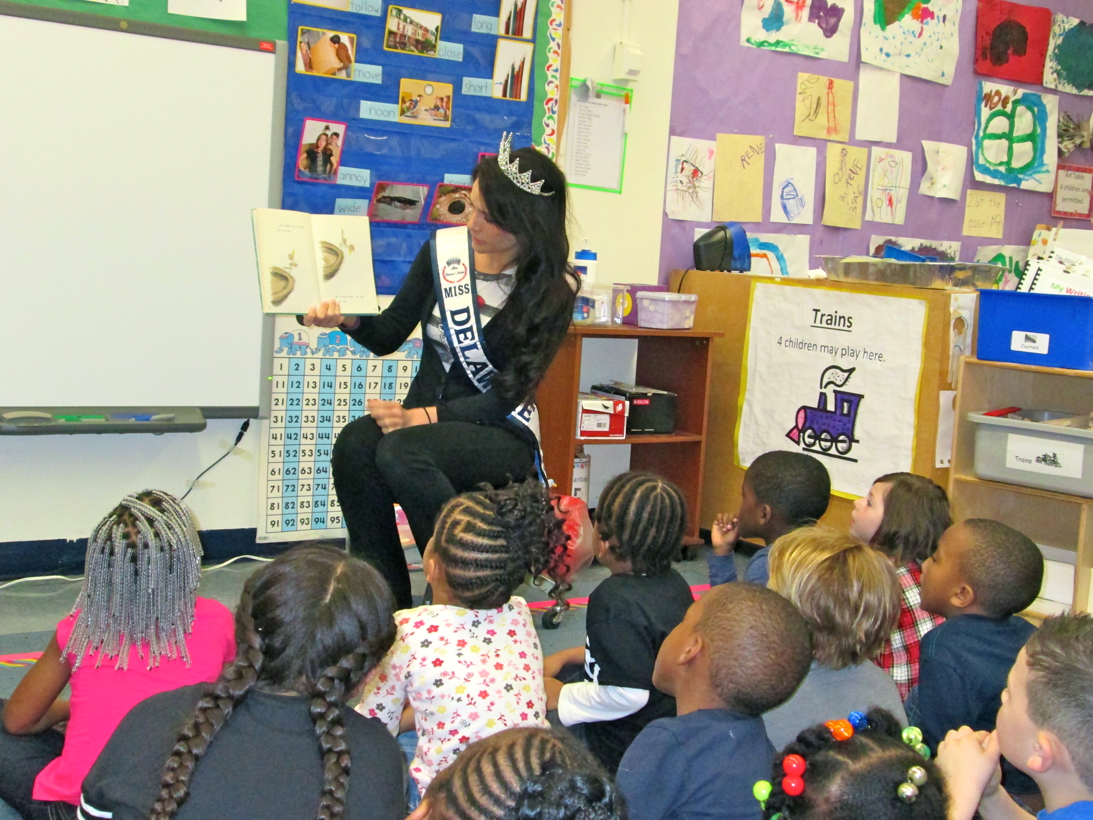 This week, Success Won’t Wait co-founder Vincenza Carrieri-Russo — who is also the reigning Miss Delaware United States — delivered over 100 children’s books to the pre-K students of Warner Elementary. Vincenza was able to visit with the classrooms, speak with the children, and even do a little read-aloud!