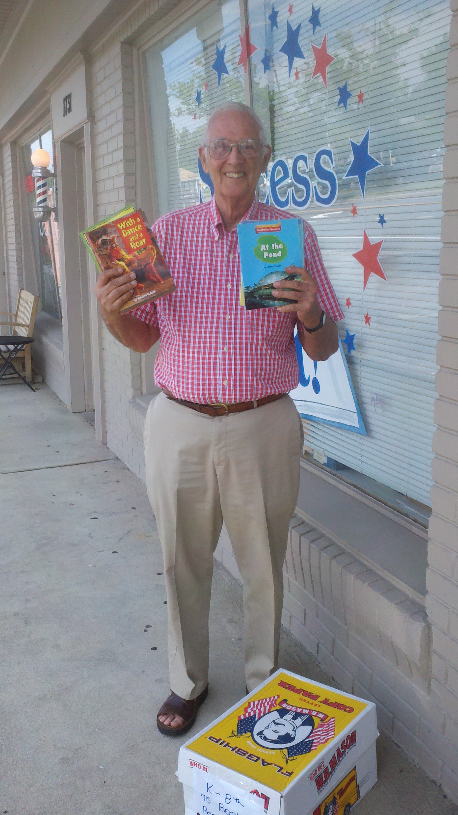 Pictured is Larry Jilk, founder of the Phoenixville Read-Aloud Program, with just a few of the 500+ children’s books donated today.