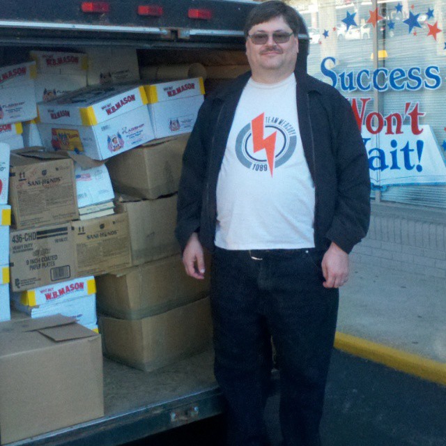 Although the annual Duel on the Delaware “Miracle of Reading Education” Book Drive doesn’t officially begin until tomorrow, one team got a BIG jump on the competition. Today, Jerry Ely, a mentor from Team Mercury (#1089) from Hightstown High School dropped off an amazing 111 boxes of books!